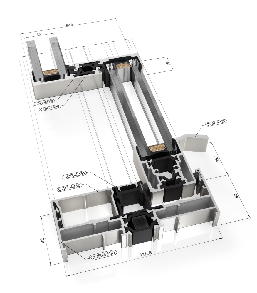 Thermally broken minimalist sliding system that provides maximum luminosity with a minimal aluminium interlock profile. It has an elegant design only 20 mm sightline and offers the possibility of an inlaid closing system and of hiding the frame along the perimeter. Possibility of locking system in the interlock, thus allowing the concealment of the sashes in the frame from a frontal view. Possibility of embedded locking system which facilitates the sashes crossing.