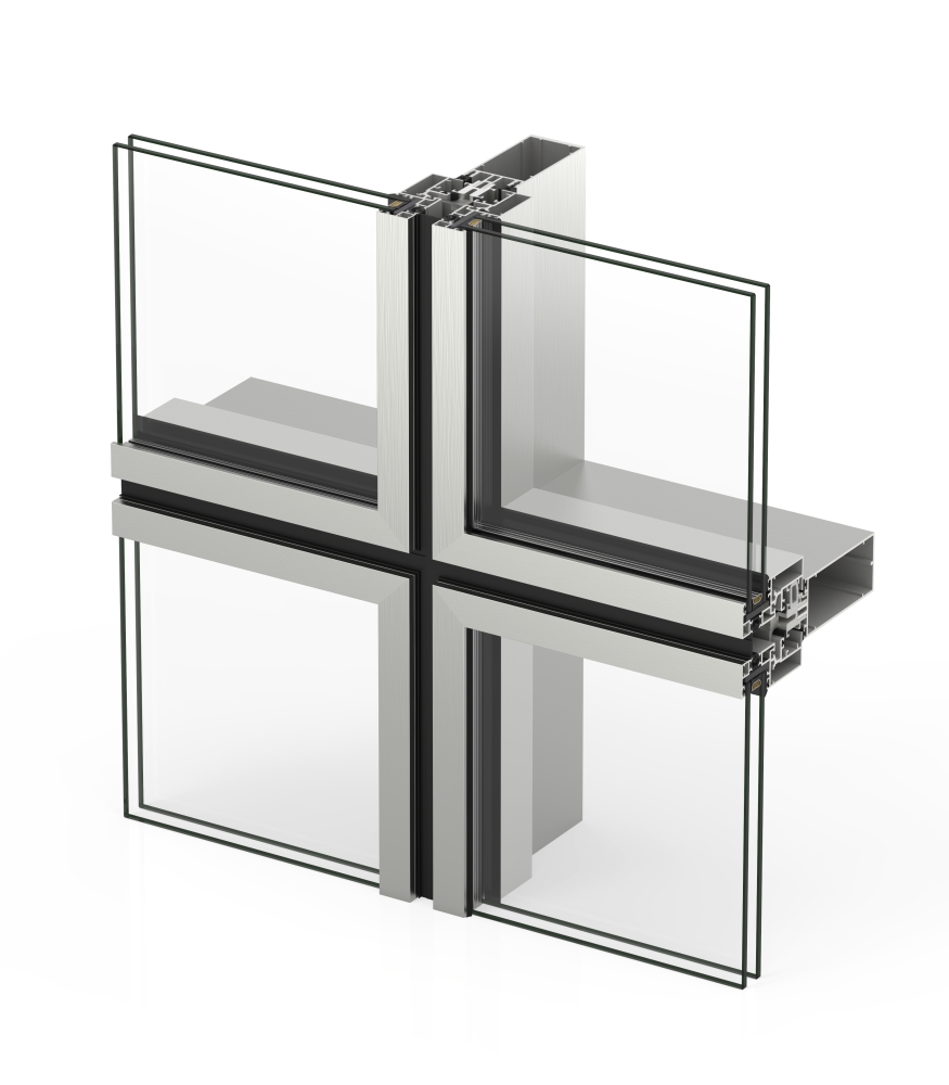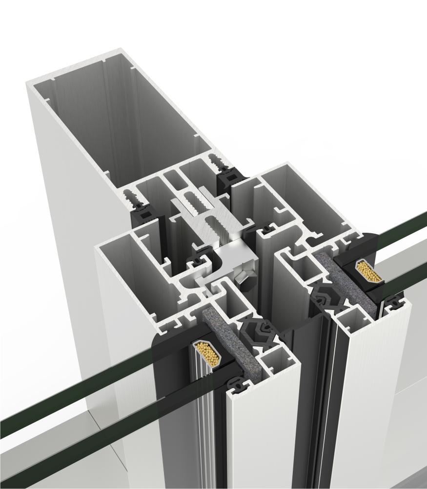 Extensive profile range, their mechanical unions allow for all types of façades to be built (vertically, inclined, 90° corners, corners, polygonal) as well as solving large and heavy glazing modulations