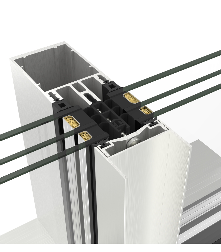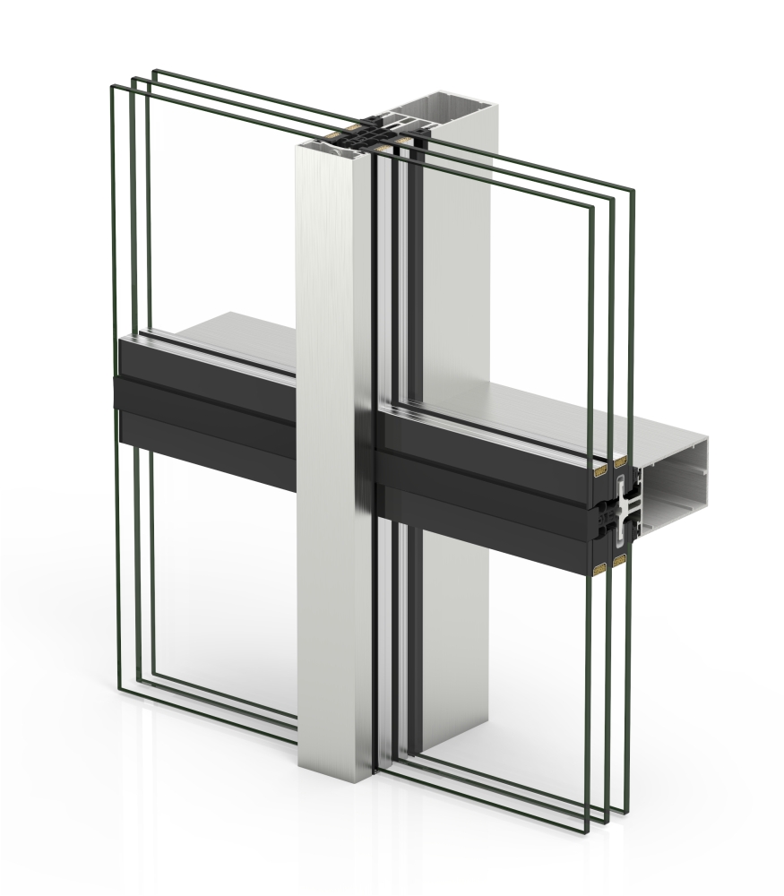 Extensive profile range, their mechanical unions allow for all types of façades to be built (vertically, inclined, 90° corners, corners, polygonal) as well as solving large and heavy glazing modulations