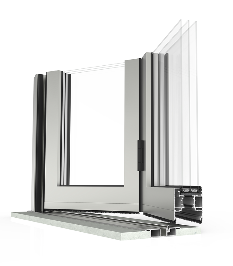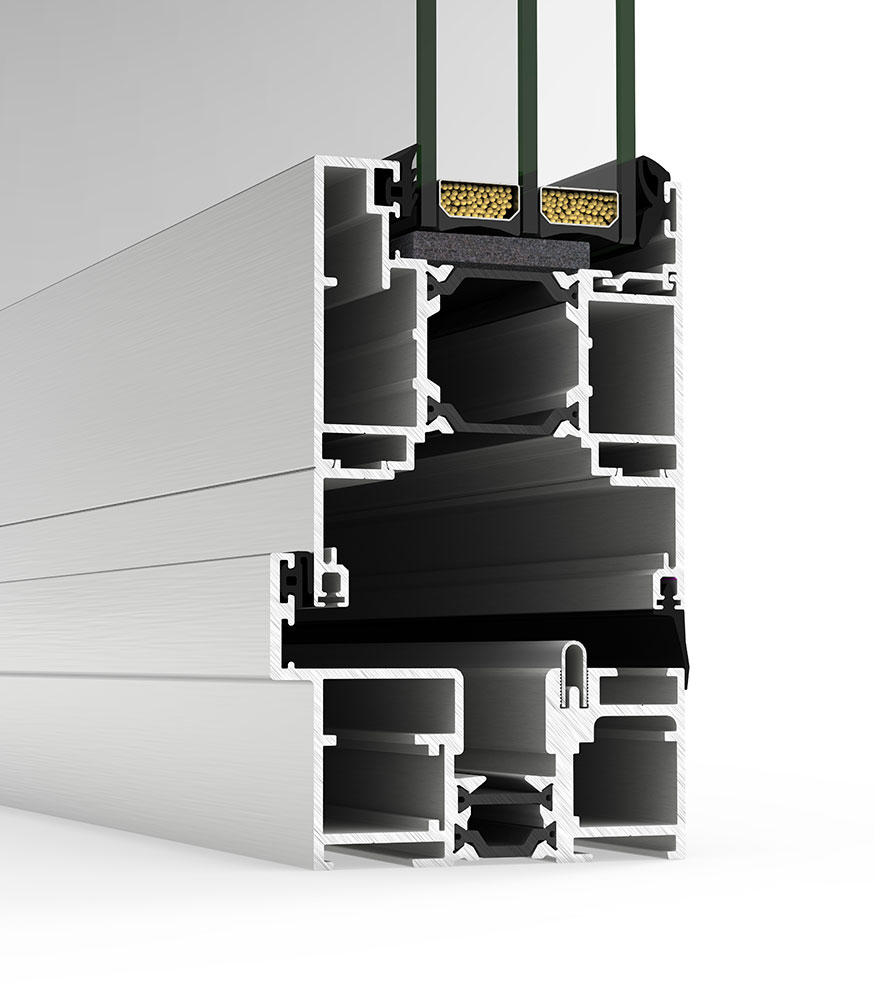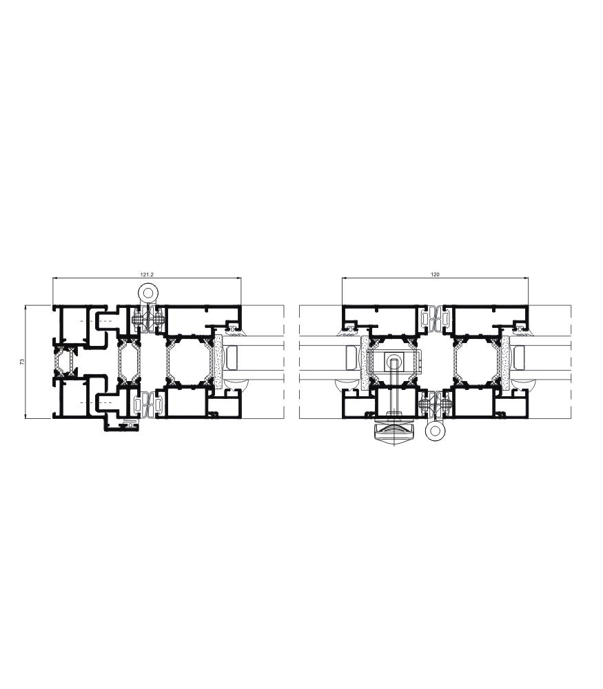 Bi-fold door system with 73 mm of frame depth and optimal thermal and acoustic performances, ideal for moderate climates.